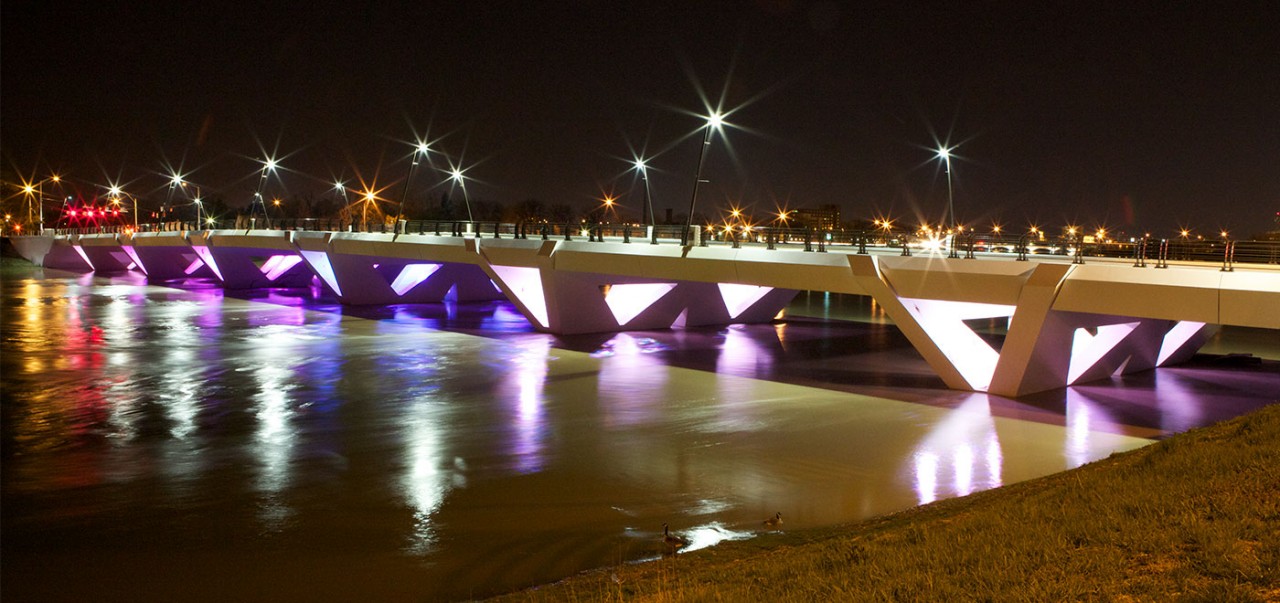 A while back, my husband and I still being new to the city of Dayton decided we would have a look at the cities parks and sights to become more familiar with our new home. Along our drive, we took notice of a bridge! A beautifully structured bridge that allowed for cars to drive over, bicycles, and walking. One other thing stood out that could not be missed. It was illuminated with multiple colors.